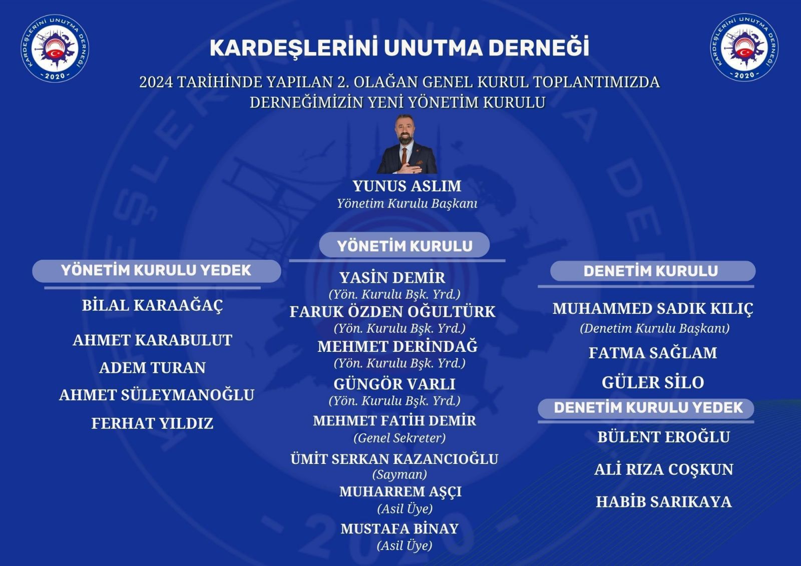 Kardeşlerini Unutma Derneği yönetimi ise şu şekilde oldu :