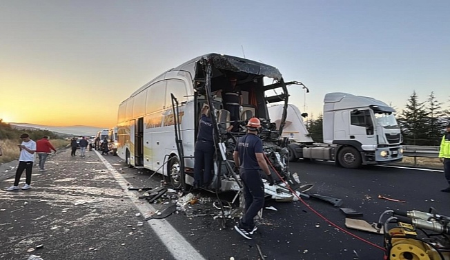 Anadolu Otoyolu’nun Bolu kesiminde meydana gelen trafik kazasında, seyir halindeki Malatya otobüsü önünde ilerleyen kamyona çarptı.