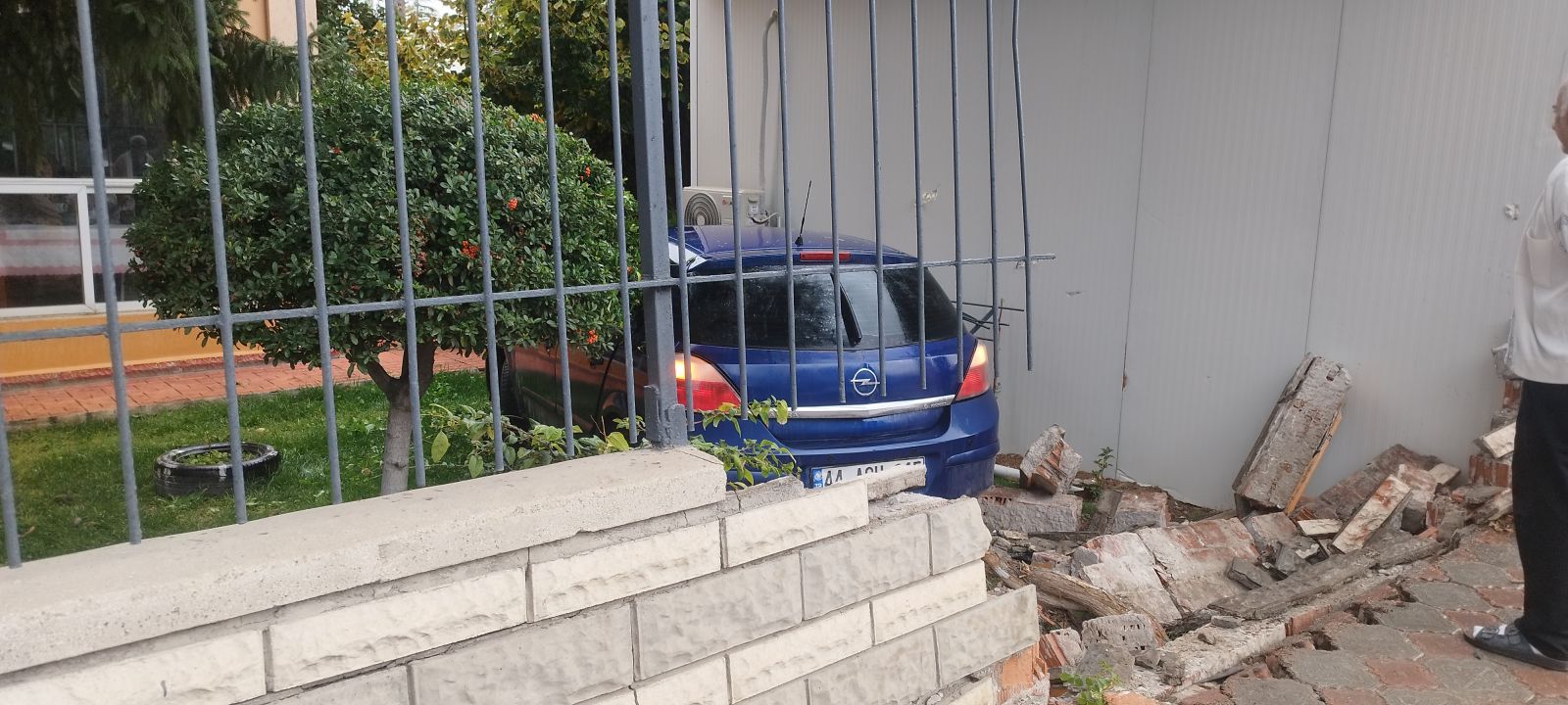 Edinilen bilgilere göre, araç sürücüsü yanında bulunan çocuğuyla birlikte seyir halindeyken, karşı yönden gelen araca çarpmamak için direksiyonu aniden kırdı. Direksiyon hâkimiyetini kaybeden sürücü, yol kenarındaki evin bahçe duvarını aşarak içeri girdi.