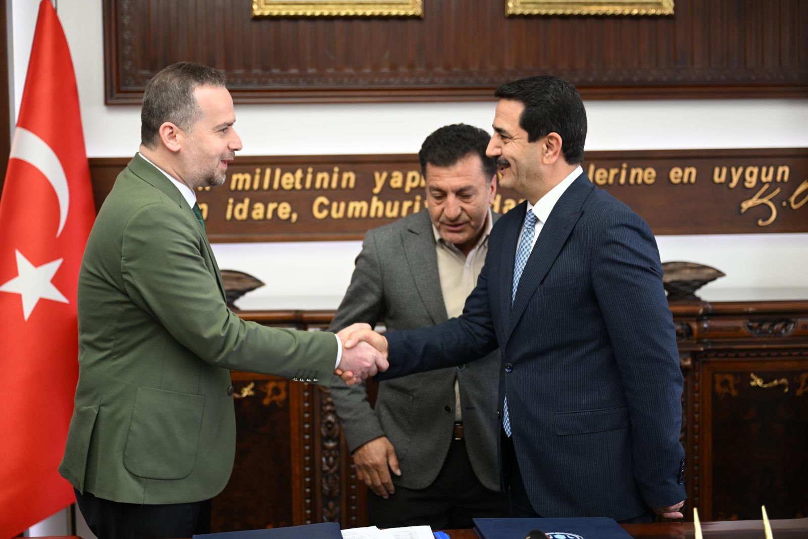 "Deprem sonrası Malatya'mızın en kritik ihtiyaçlarından birini gideriyoruz. İlk taziye evimizi tamamlamak üzereyiz. Bugün Salih Karademir ile ikinci taziye evimiz için de protokol imzalıyoruz. Hayırsever iş insanı Salih Karademir'e bu değerli katkıları için teşekkür ediyorum."