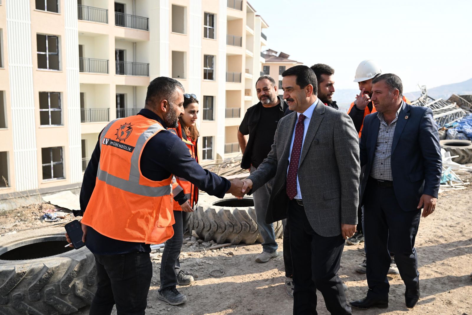 Başkan Taşkın, Yılkanur firmasının inşa ettiği konutlarda çevre düzenlemesinin de hızla ilerlediğini ifade ederek, “Çalışmalar artık son aşamaya geldi. Hak sahiplerimizin sabırsızlıkla beklediği yeni konutlarda altyapı, peyzaj ve çevre düzenleme işlemleri hummalı bir şekilde sürüyor. Allah’ın izniyle ocak ayında hemşehrilerimiz yeni yuvalarına kavuşacak. Valiliğimizin koordinasyonunda yürütülen çalışmalarla birlikte bölgedeki okulların da ikinci döneme yetişmesi hedefleniyor.” dedi.
