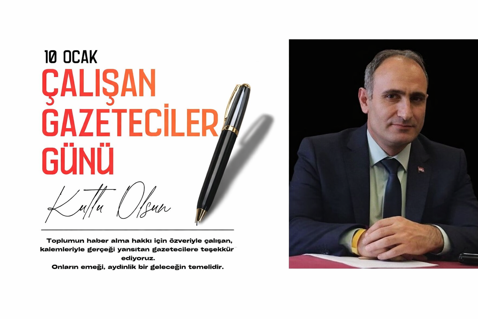 “Toplumun haber alma hakkı için gece gündüz demeden, büyük bir özveri ve sorumluluk bilinciyle görev yapan tüm basın emekçilerimizin 10 Ocak Çalışan Gazeteciler Günü’nü en içten dileklerimle kutluyorum. Basın, demokratik toplum düzeninin vazgeçilmez unsurlarından biridir.”