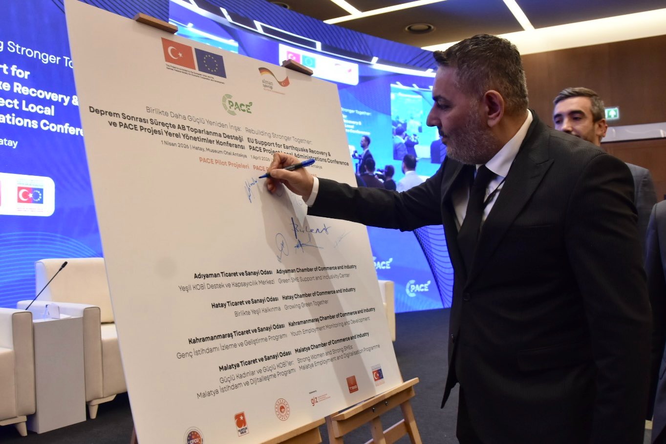 Malatya Ticaret ve Sanayi Odası (MTSO) Yönetim Kurulu Başkanı Oğuzhan Ata Sadıkoğlu, Hatay’da düzenlenen “Birlikte Daha Güçlü Yeniden İnşa: Deprem Sonrası Süreçte AB Toparlanma Desteği ve PACE Projesi Konferansı”na katılım sağladı.