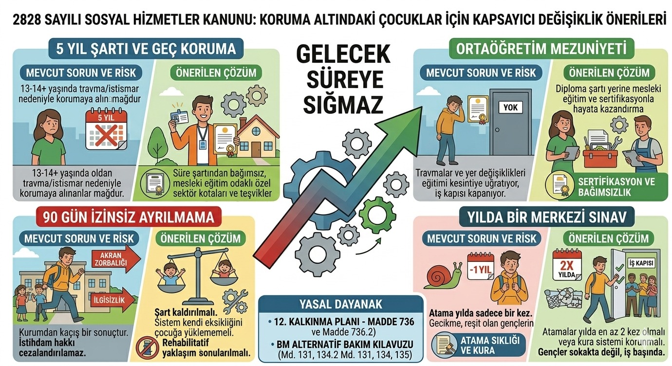 Mesleki Eğitim Odaklı Kota: 14 yaşından sonra korumaya alınan gençler için süre şartı aranmaksızın özel sektörde ayrı istihdam kotaları oluşturulmalı.