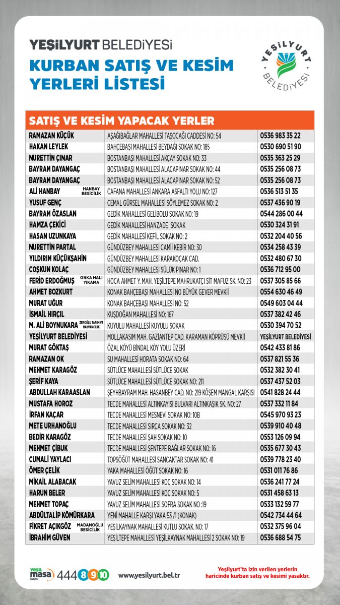 alacağız. Satış ve kesim noktalarının temizliği, kurban atıkların kaldırılması ve oluşacak diğer sorunlara ve